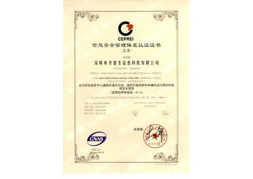 信息安全管理體系認證證書(正本)