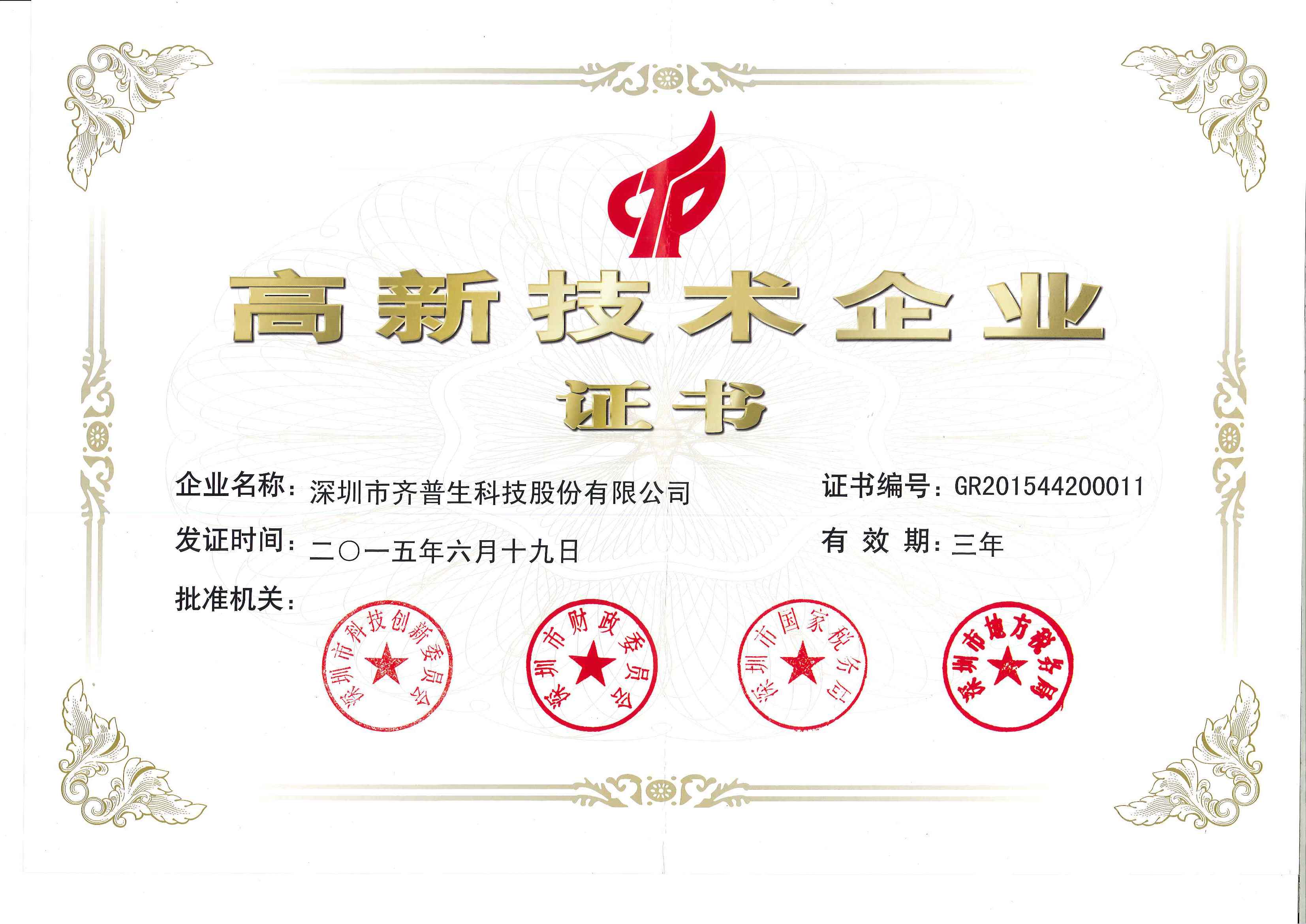 深圳市高新技術(shù)產(chǎn)業(yè)協(xié)會會員證書